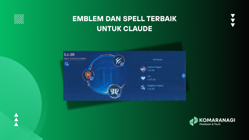 Perlu dicatat, emblem level tinggi ngaruh banget ke performa Claude. Misalnya, upgrade dari level 5 ke 60 bisa nambah damage basic attack dan skill walau kelihatannya kecil. Tapi itu efeknya terasa banget pas kamu udah pegang item-item core.