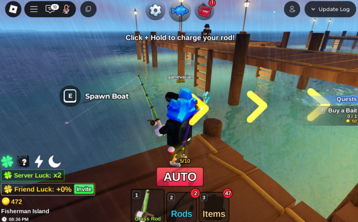 Pertama-tama, yang harus dilakukan itu cukup simpel. Tinggal ambil joran, jalan ke dermaga yang ditandai panah hijau, terus tahan klik kiri sampai bar-nya penuh di bagian “Perfect” atau “Amazing”. Kalau pas dapet di bagian itu, peluang dapet ikan langka jadi lebih besar. Nah, ikan-ikan yang udah didapet nanti bisa langsung dijual di toko buat dapetin koin. Dari situ, baru deh bisa mulai upgrade alat pancing.